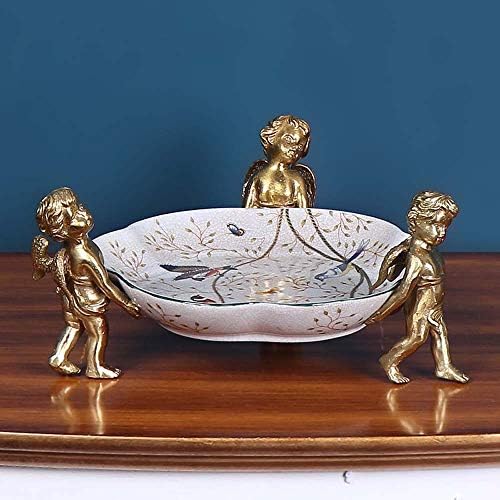 YANG1MN.Ornaments Home Living Room Decorative Fruit Bowl Small Ceramic Angel Inlaid Copper Light Luxury Model Room Soft Mounted Ornaments 25.5 25.5 11cm (Color : A)