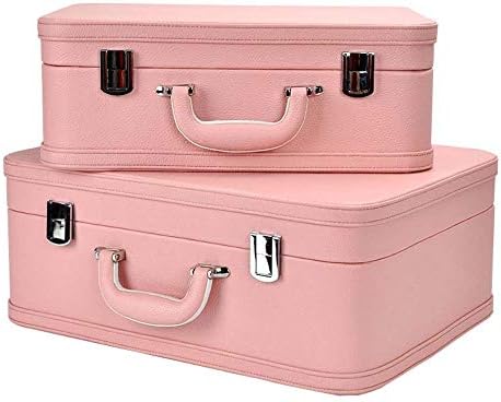 YANG1MN.Ornaments Soft Ornament Ornaments Pink Leather Suitcase Model Room Storage Box Children’s Room Girl Room Decorative Boxes L, S (Size : L)