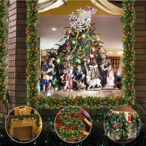 【Indoor Or Outdoor Display】: Christmas Garland lighted for Christmas Holiday decoration indoor outdoor, home, mantel, fireplace,table, door frame, entryway, doorway, windows, garden, patio, porch, doorway, stair banisters, table centerpieces.and more.