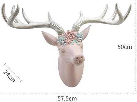 zenggp Large Wall Mounted Hanging Deer Head Elk Resin Ornaments Home Decoration Realistic,Pink-572450cm